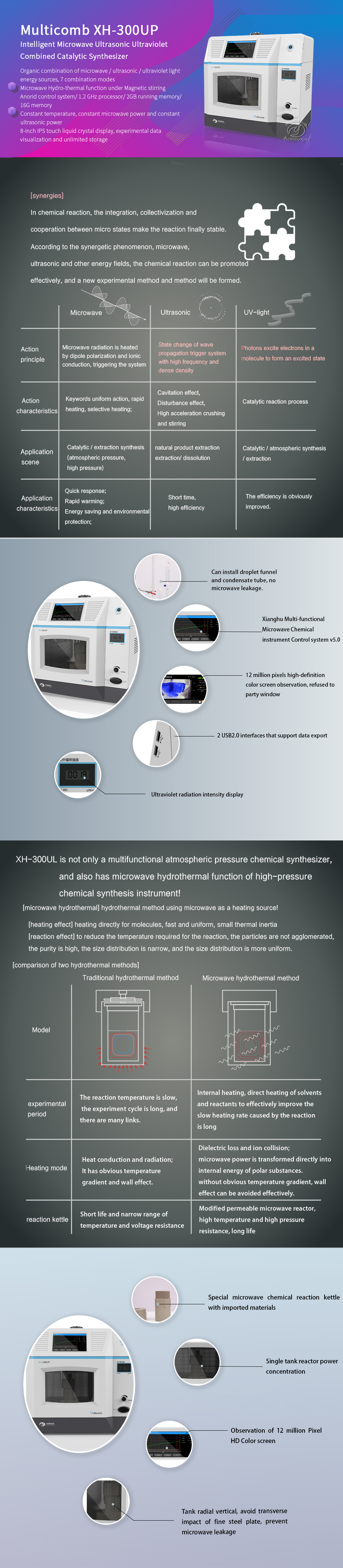 | Microwave Radiation Synchronized Cooling | Customized modification of the instrument side wall of the water inlet and outlet and do a good job of microwave shielding, in order to later feed, air, liquid. Equipped with jacketed flasks, can be in the microwave heating, ultrasonic oscillation external refrigerant to take away the heat, maximize the microwave, ultrasonic output power. |