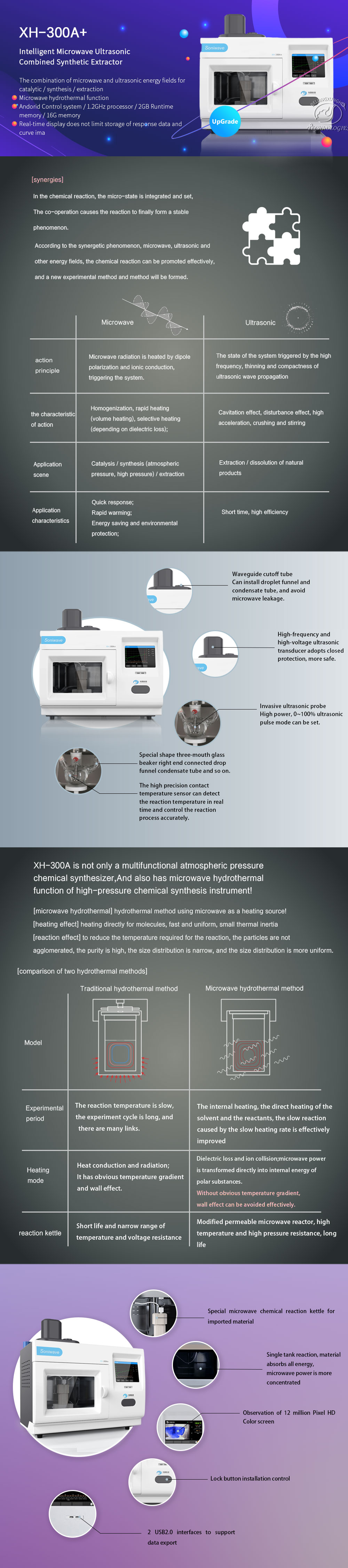 | Microwave-Ultrasonic Synergistic Control | Under the constant temperature mode, the microwave power and ultrasonic duty cycle will be automatically adjusted with the temperature to ensure temperature stability, and the fluctuation of temperature control is ≤±2℃. |