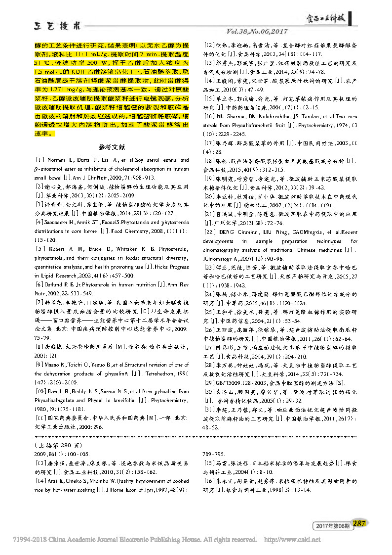 This paper was completed by a research scholar at the School of Food Engineering, Harbin University of Commerce. The paper discusses microwave-assisted extraction of phytosterol phytosterols and microscopic morphology of cells, and published in the important journal .