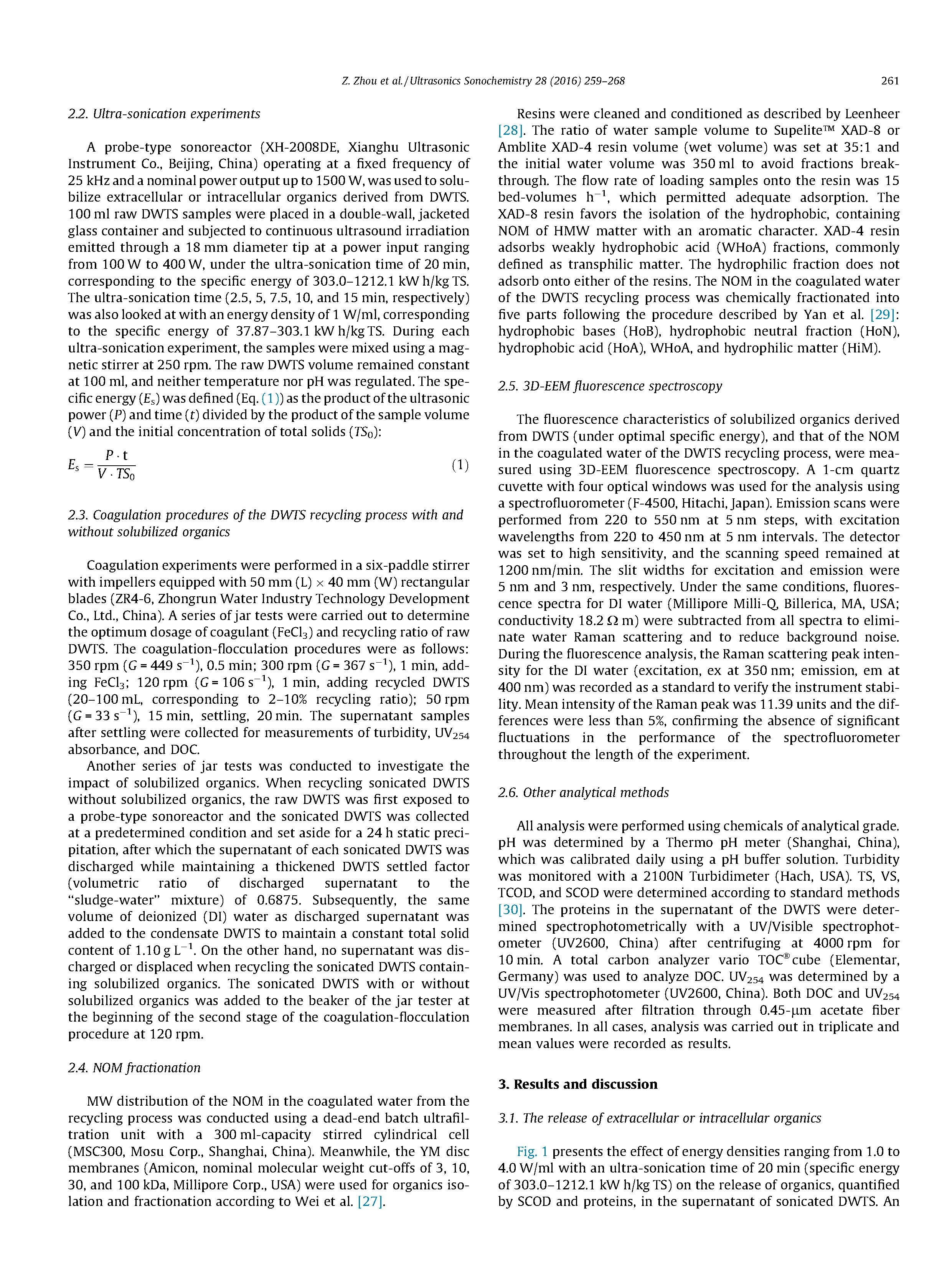 為了闡明飲用水處理污泥(DWTS)中增溶有機(jī)物在DWTS循環(huán)過程中去除天然有機(jī)物(NOM)的作用,采用頻率為25 kHz的探頭聲納對不同比能量的有機(jī)物進(jìn)行了增溶處理。評價(jià)了含增溶有機(jī)物和不加增溶有機(jī)物的超聲波DWTS回收過程中與NOM去除有關(guān)的混凝行為,并測定了混凝水中對有機(jī)物分餾的影響。研究結(jié)果可為設(shè)計(jì)避免有機(jī)物富集的DWTS回收工藝提供有益的啟示。