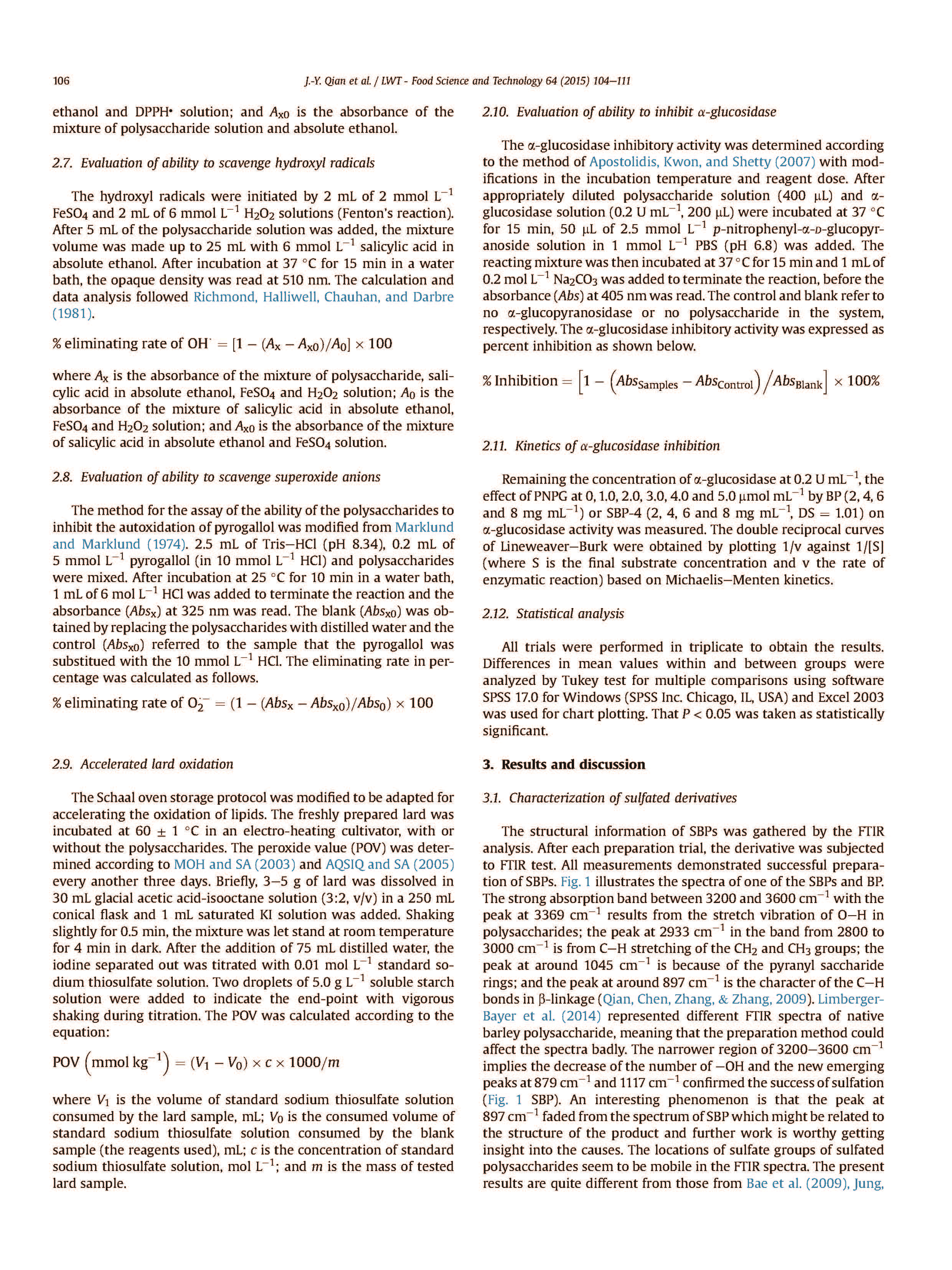198 硫酸化修飾大麥多糖的抗氧化和α-葡萄糖苷酶抑制活性