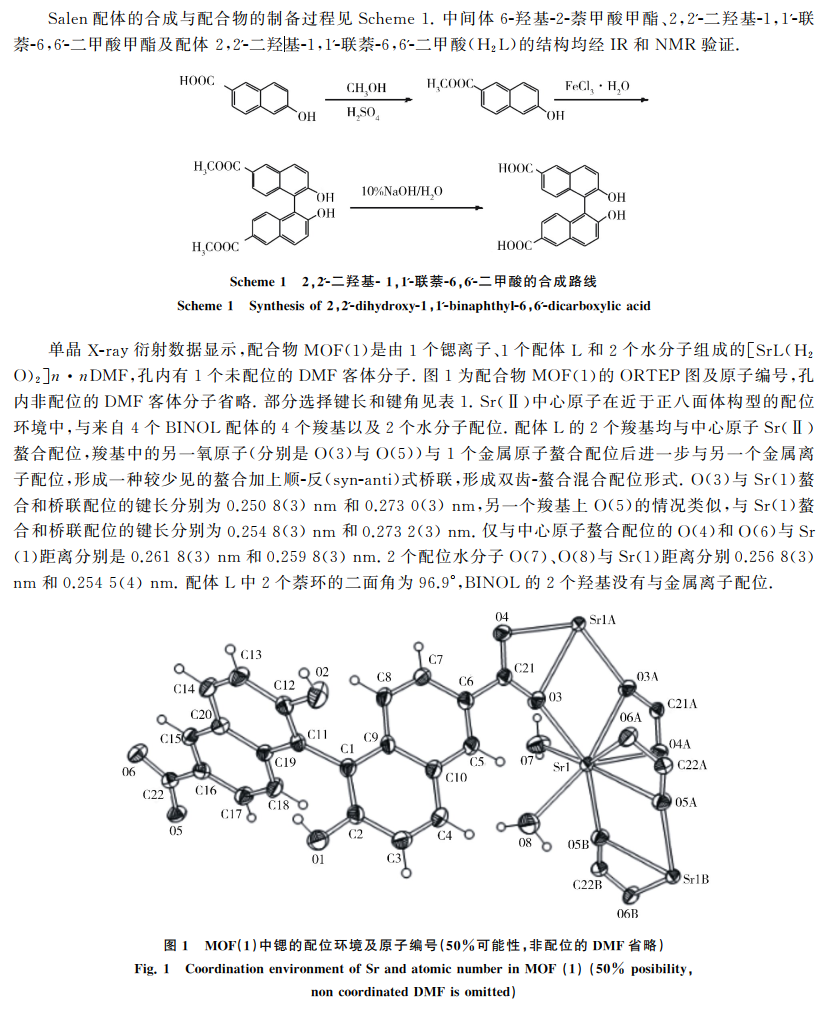 一種新型二維BINOL 金屬-有機(jī)框架的合成