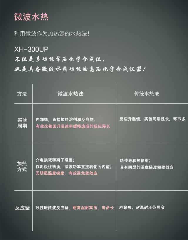 | 工作模式 | 常壓:安裝回流冷凝管進行開放式反應 高壓:使用高壓反應釜進行密閉式反應 |