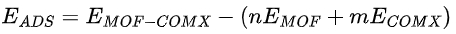 - 材料層面的模擬:使用Materials Studio軟件模擬這些化合物(1 - 8)與MOF材料的相互作用。使用DMol3程序包在密度泛函理論(DFT)方法下計(jì)算所有構(gòu)型(MOF和化合物 - X(COMX,X = 1 - 8)的優(yōu)化。交換和相關(guān)項(xiàng)使用GGA(廣義梯度近似)- PBE(Perdew,Burke和Ernzerhof)方法確定[41]。為了在MOF材料的這個(gè)超晶胞的C軸上創(chuàng)建足夠的吸附空間,使用超晶胞(MOF - 晶胞)作為吸附劑,對(duì)化合物1 - 8進(jìn)行吸附模擬。最后,使用Sorption模塊在COMPASSII力場(chǎng)下模擬了幾個(gè)化合物 - X在MOF板可及表面上的吸附構(gòu)型。使用Metropolis Monte Carlo方法進(jìn)行了105個(gè)Monte Carlo步驟和10個(gè)退火循環(huán)的化合物1 - 8在框架中的吸附計(jì)算。獲得了每個(gè)化合物的最終吸附構(gòu)型?;衔?- X在MOF中的吸附能(EADS)通過(guò)以下公式計(jì)算: