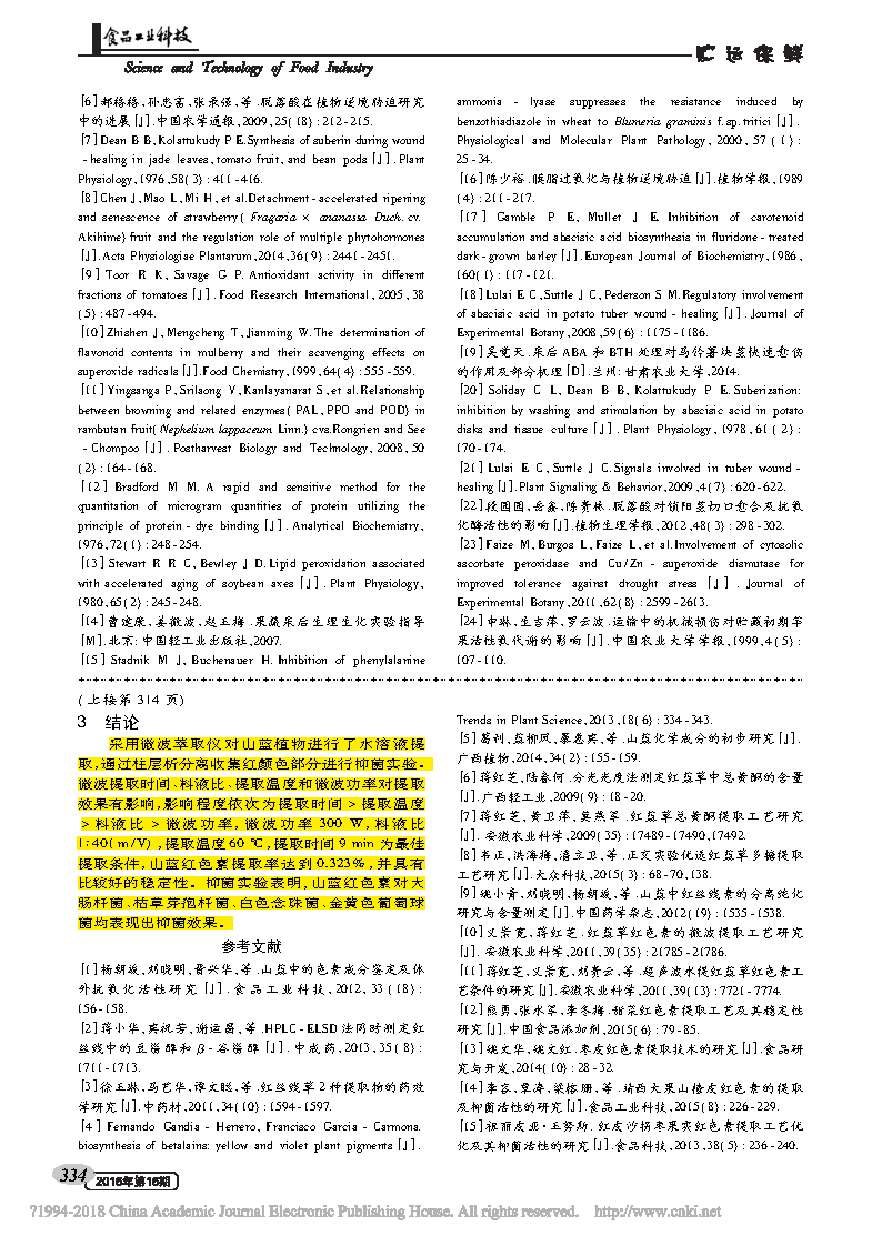 這篇由廣西民族師范學(xué)院化學(xué)與生物工程系的研究學(xué)者完成,討論山藍(lán)紅色素的微波提取工藝及抑菌活性的論文,發(fā)表在重要期刊《食品工業(yè)科技》上。