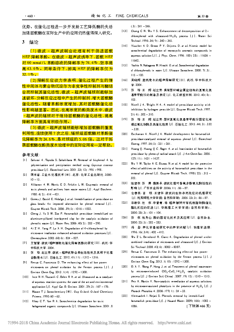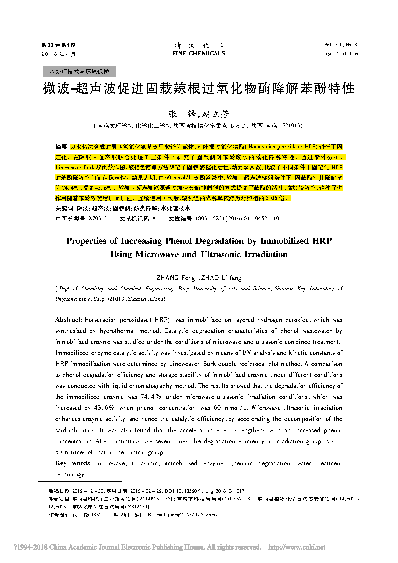 300B 微波_超聲波促進固載辣根過氧化物酶降解苯酚特性