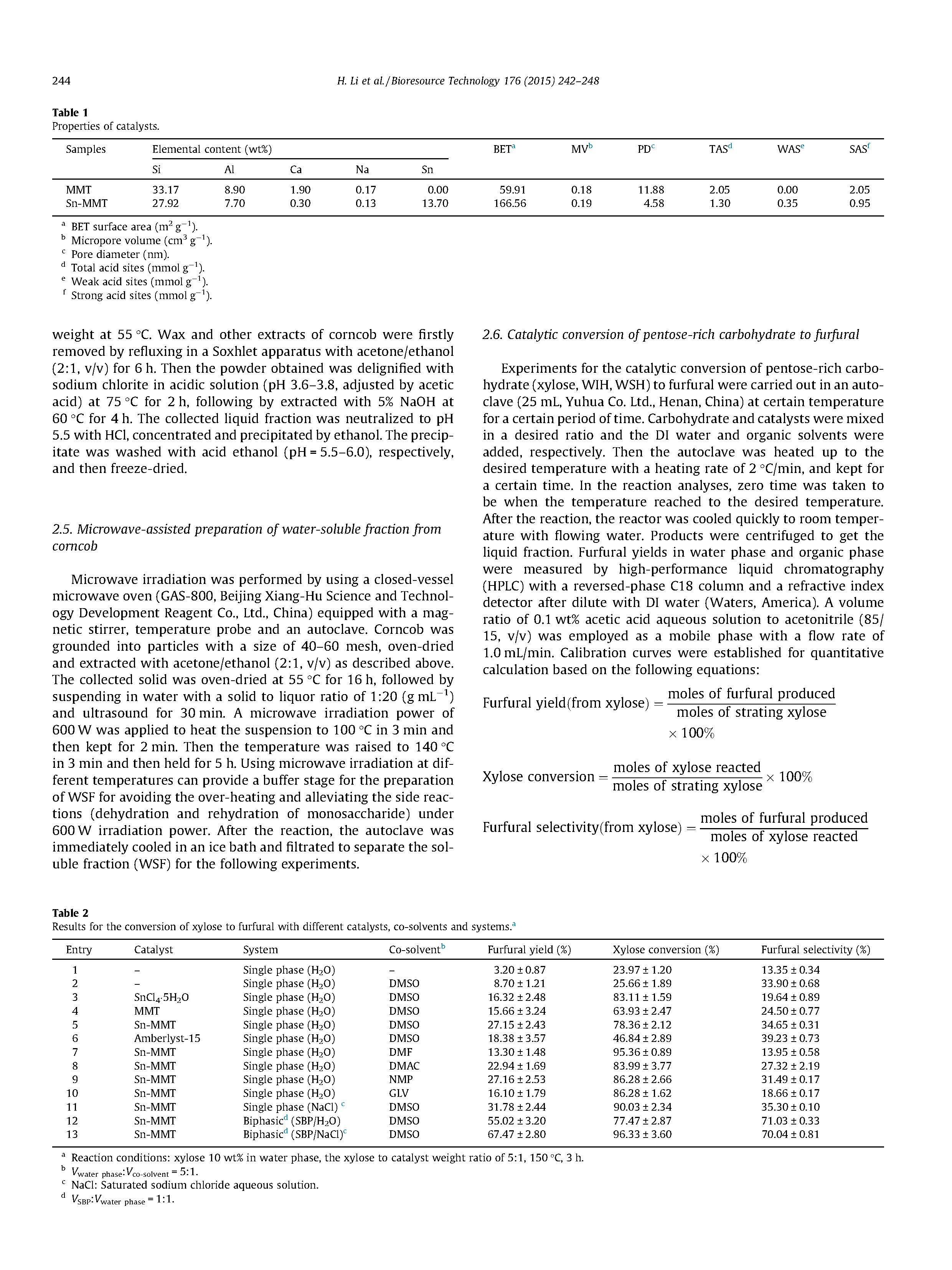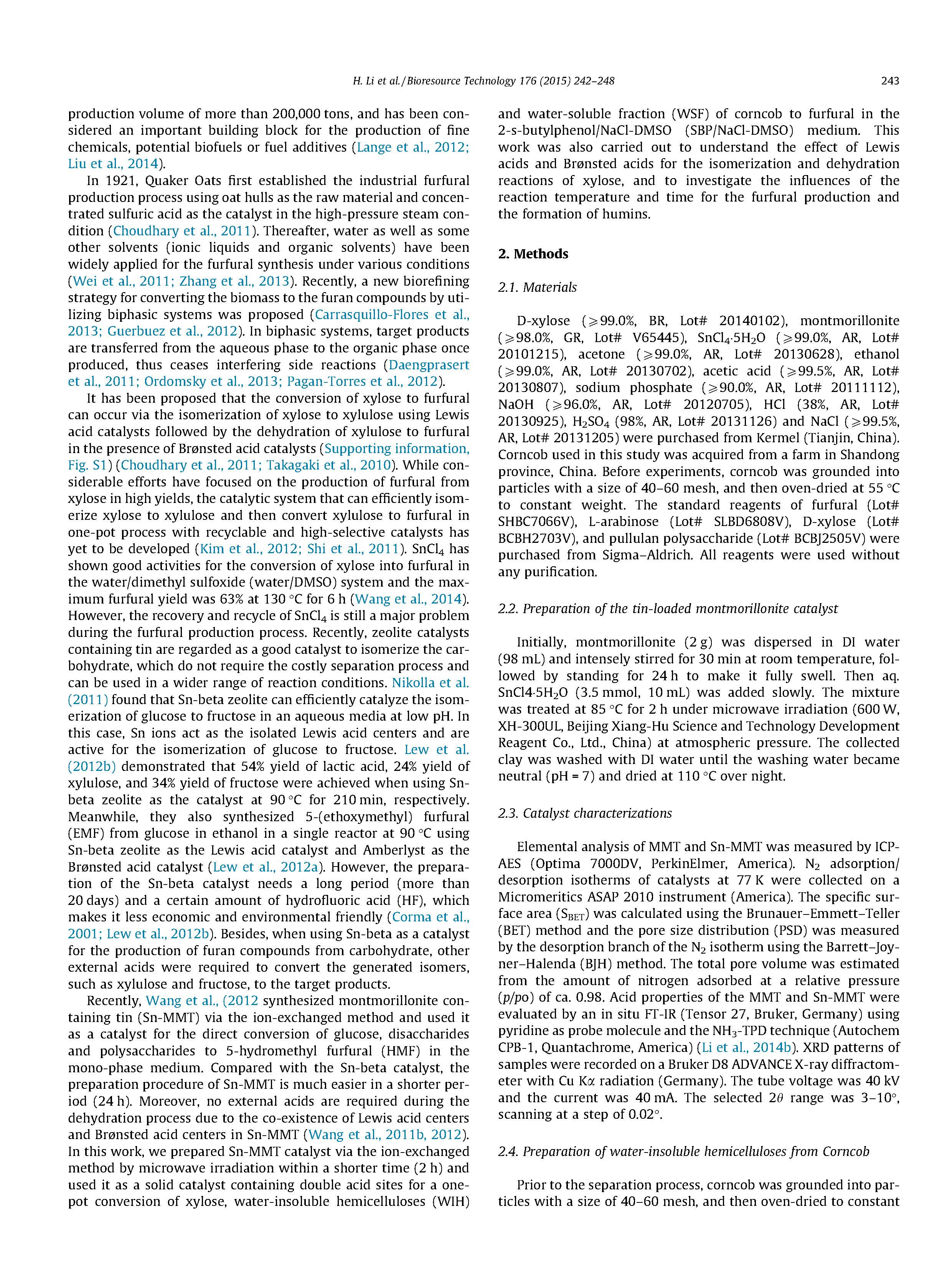 225 通過載錫蒙脫石固體酸催化劑從木糖,水不溶性半纖維素和玉米芯的水溶性部分生產(chǎn)糠醛