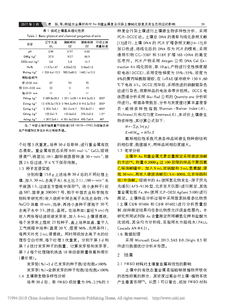 這篇由中國(guó)科學(xué)院地理科學(xué)與資源研究所的研究學(xué)者完成,討論鐵錳雙金屬材料對(duì)As和重金屬?gòu)?fù)合污染土壤鈍化修復(fù)及其生態(tài)效應(yīng)的影響的論文,發(fā)表在重要期刊《農(nóng)業(yè)環(huán)境科學(xué)學(xué)報(bào)》上。