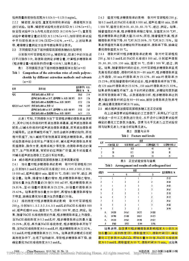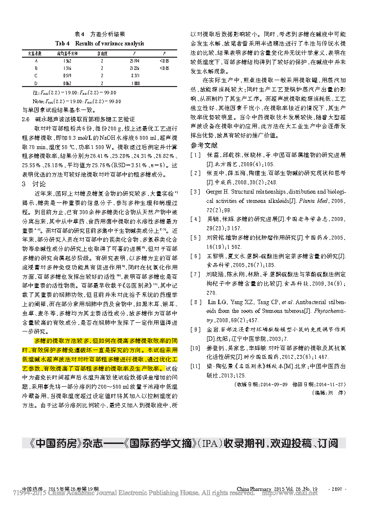 這篇由黑龍江省中醫(yī)藥科學(xué)院的研究學(xué)者完成,討論堿水超聲波法提取對葉百部粗多糖的工藝研究的論文,發(fā)表在重要期刊《中國藥房》上。