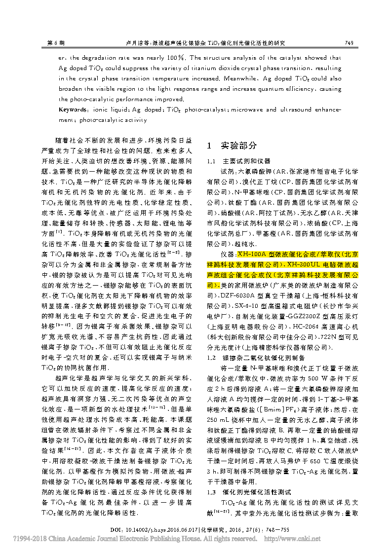 這篇由云南師范大學(xué)化學(xué)化工學(xué)院的研究學(xué)者完成,討論微波超聲強化銀摻雜Tio2催化劑光催化活性的研究的論文,發(fā)表在重要期刊《化學(xué)研究》上。